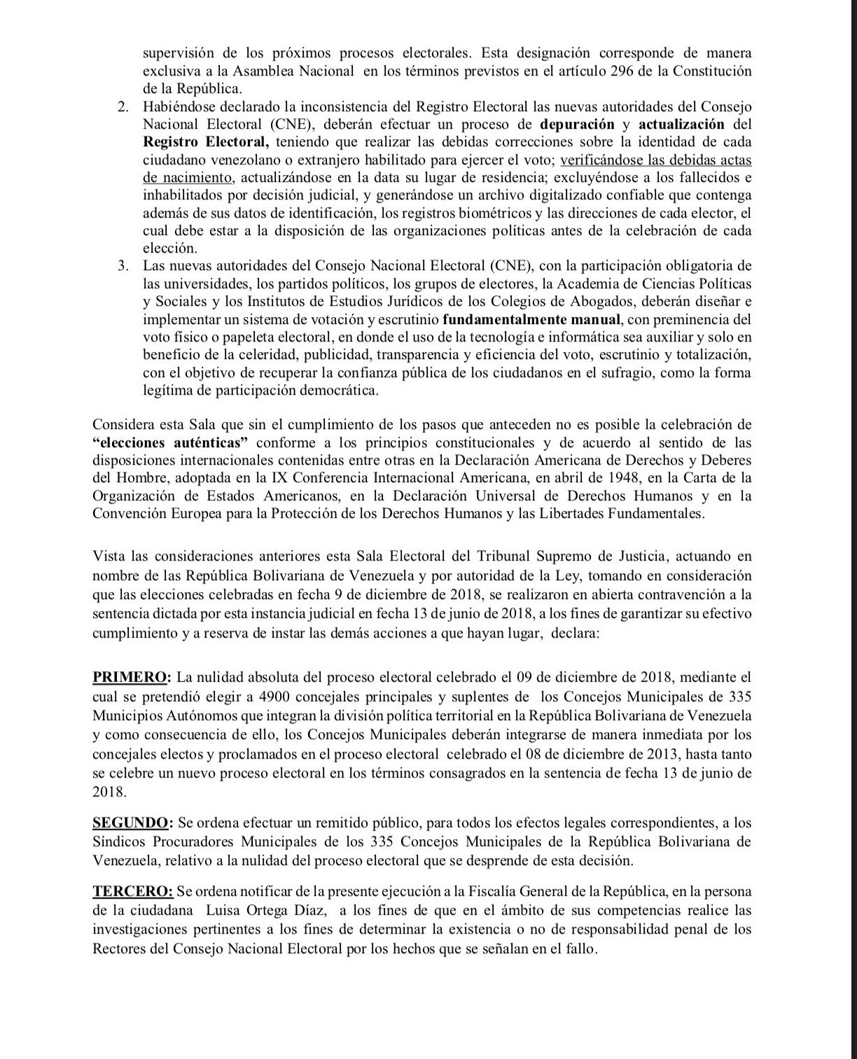 Para poner orden en el sistema electoral Venezolano y previendo que en algún momento el FSP intentaría llevar adelante unas nuevas elecciones fraudulentas, el TSJ VENEZOLANO (para la época que daban la impresión de ser un bloque sólidamente Venezolano) emitió una sentencia que intentaría ordenar el sistema electoral Venezolano y acabar con los fraudes electorales, ordenó lo siguiente: